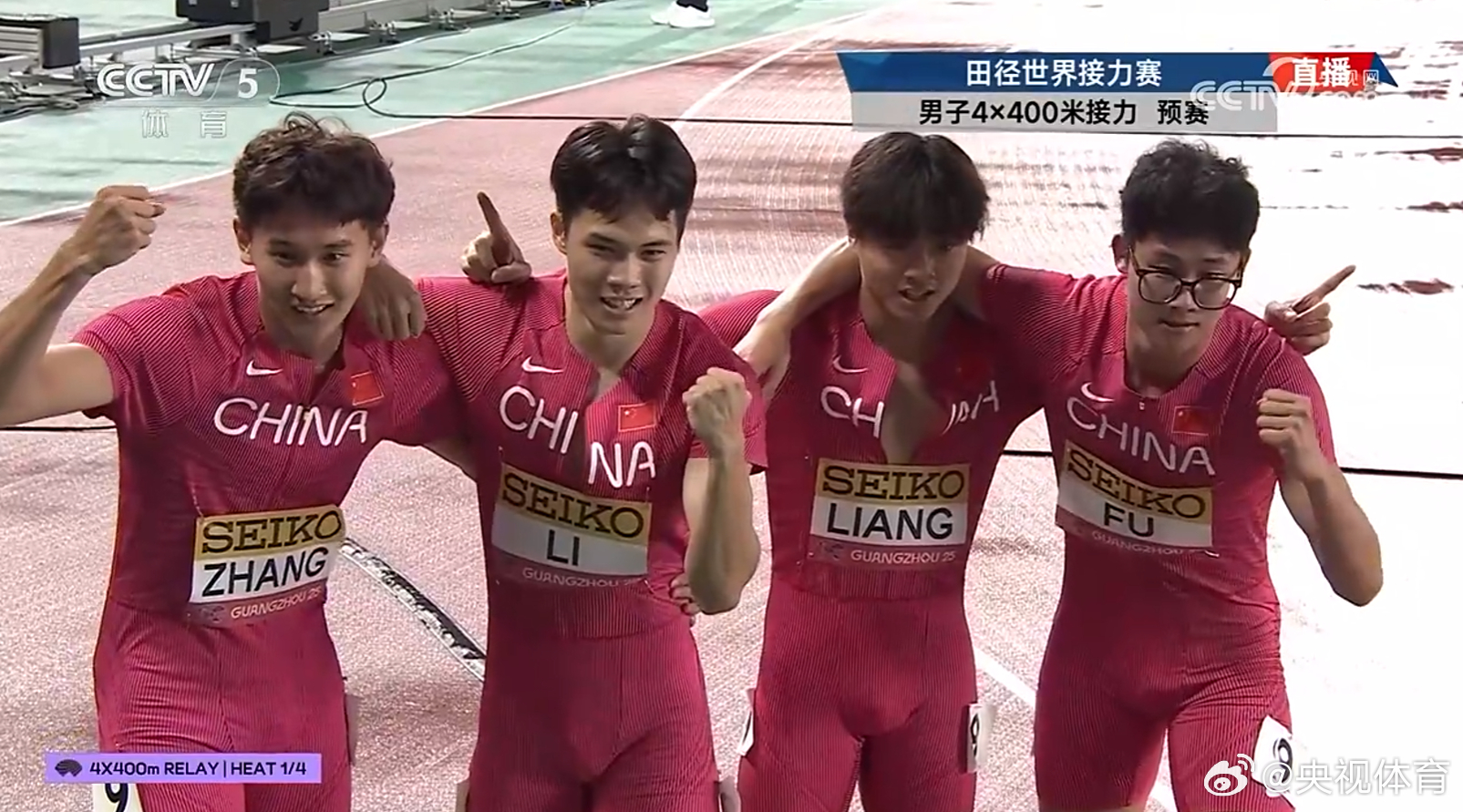 2025年世界田联男子4×400米接力预赛中国队小组第二晋级决赛,直通东京世锦赛